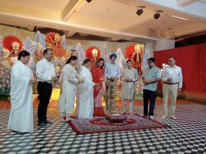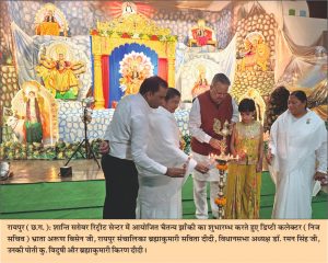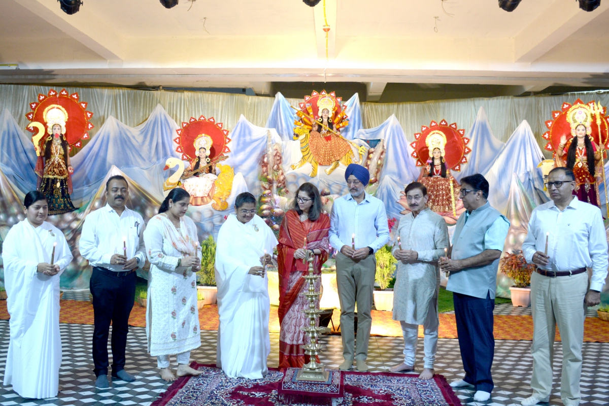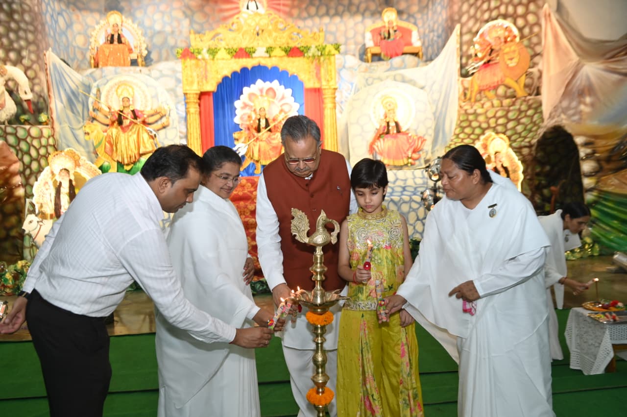 रायपुर, 24 सितम्बर 2025 : प्रजापिता ब्रह्माकुमारी ईश्वरीय विश्व विद्यालय द्वारा नवरात्रि के पावन अवसर पर नवा रायपुर अटल नगर के सेक्टर-20 स्थित सेवाकेन्द्र में सजायी गई चैतन्य देवियों की झाँकी का ब्रिगेडियर तेजिन्दर सिंह बावा (सेना मेडल), श्रीमती कुकी बावा, ट्रीपल आई टी के डायरेक्टर ओ.पी. व्यास, जिन्दल जिन्दल स्टील एण्ड पावर कम्पनी के प्रेसीडेन्ट प्रदीप टण्डन, जीएसटी के असिस्टेण्ट कमिश्नर शैलेन्द्र पाटले, ब्रह्माकुमारी सविता दीदी और रश्मि दीदी ने दीप प्रज्वलित कर शुभारम्भ किया।