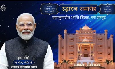 PM मोदी जी करेंगे ब्रह्माकुमारीज़ के ‘शांति शिखर’ का लोकार्पण, नवा रायपुर – लाइव 1 Nov, सुबह 10 बजे