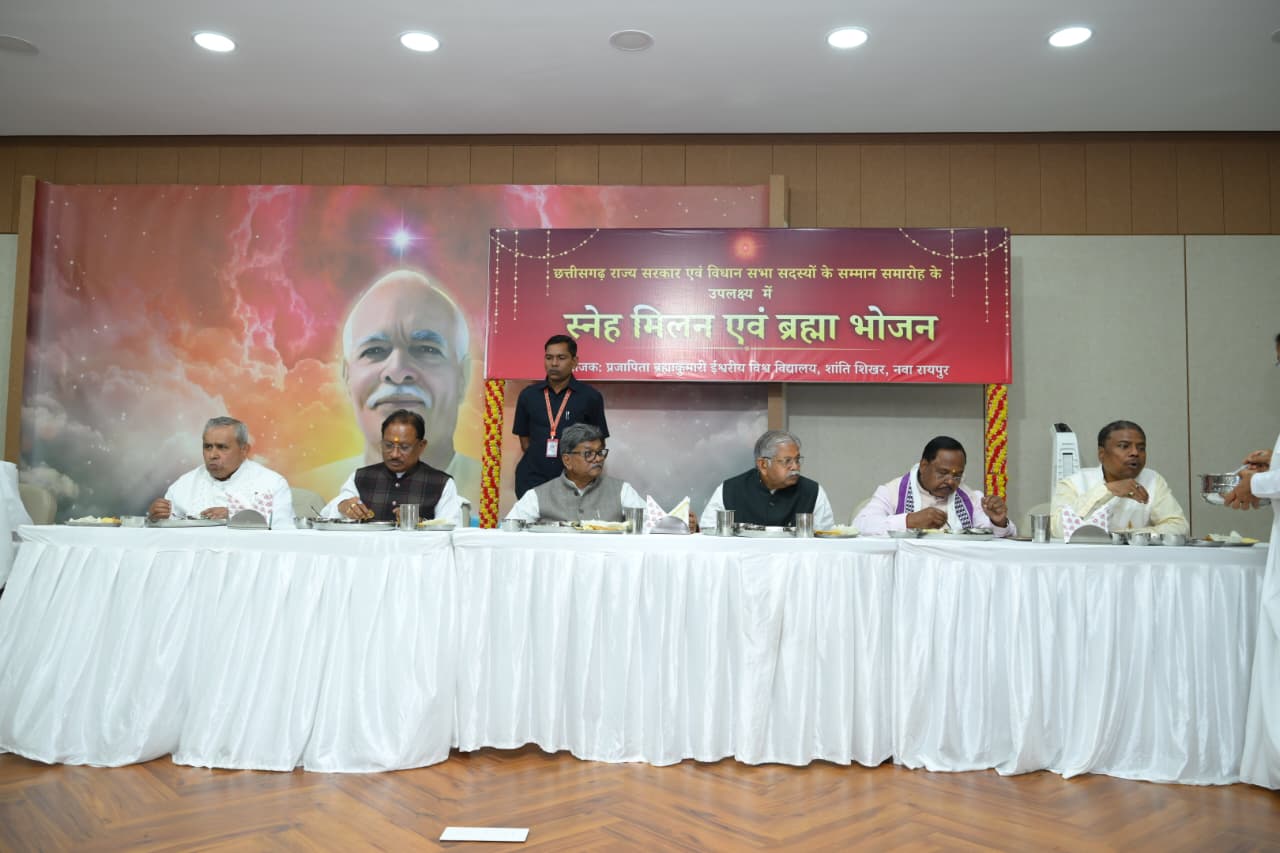 इस अवसर पर मुख्यमंत्री श्री विष्णु देव साय ब्रह्माकुमारी बहनों के अतिथि बने और पवित्र ब्रह्मा भोजन ग्रहण किया। कार्यक्रम में नेता प्रतिपक्ष डॉ. चरणदास महंत सहित कैबिनेट मंत्रीगण और सभी विधायकगणों ने भी ब्रह्मा भोजन का आनंद लिया।